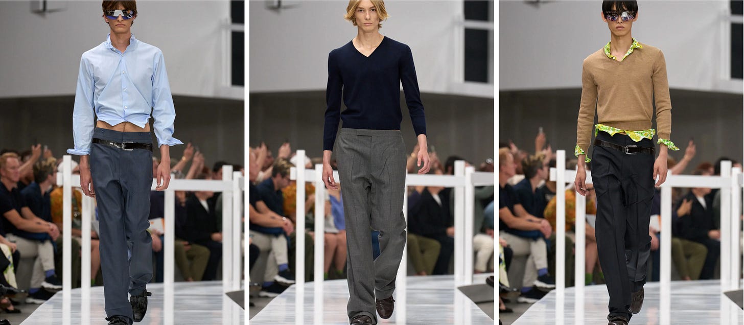 Staying excited about getting dressed from my same traveling wardrobe has become more challenging since "Things I Learned From Living Out Of A Suitcase For Months (part 1)." I often feel like I have nothing to wear, yet I manage to get dressed every day. Interestingly, my boyfriend—whose wardrobe consists almost entirely of items I borrow for these newsletters—doesn’t seem to struggle with any of this. As I’ve noted before, men’s fashion is unparalleled—if only it were tailored for women. How is it that after countless women’s shows, one glance at Prada Men’s SS25, and I still want to look strictly 'comme des garçons'?